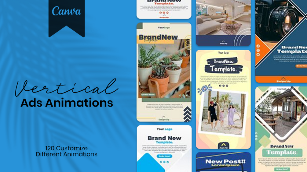 Get your 120 Vertical Video Ads Canva template, with a creative and compelling design. It includes anything you need to fastly create any vertical video ads content for your business. You can edit all aspects of the template and adapt it to your specific needs. You can replace elements, change fonts, images and everything else that might be necessary for you to create a unique vertical video ads content.